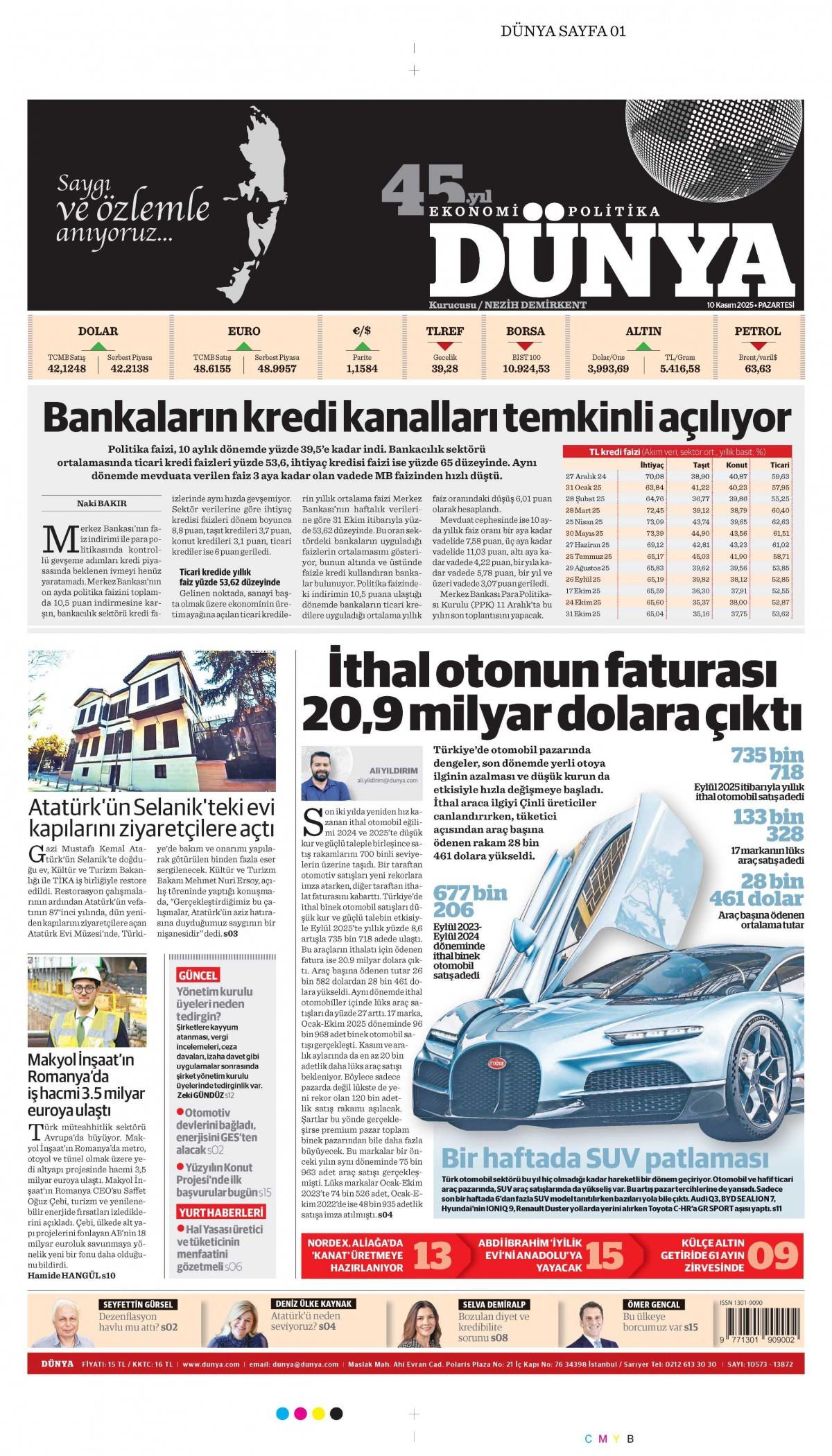 Dünya Gazetesi 10 Kasım 2025 Günü Manşeti