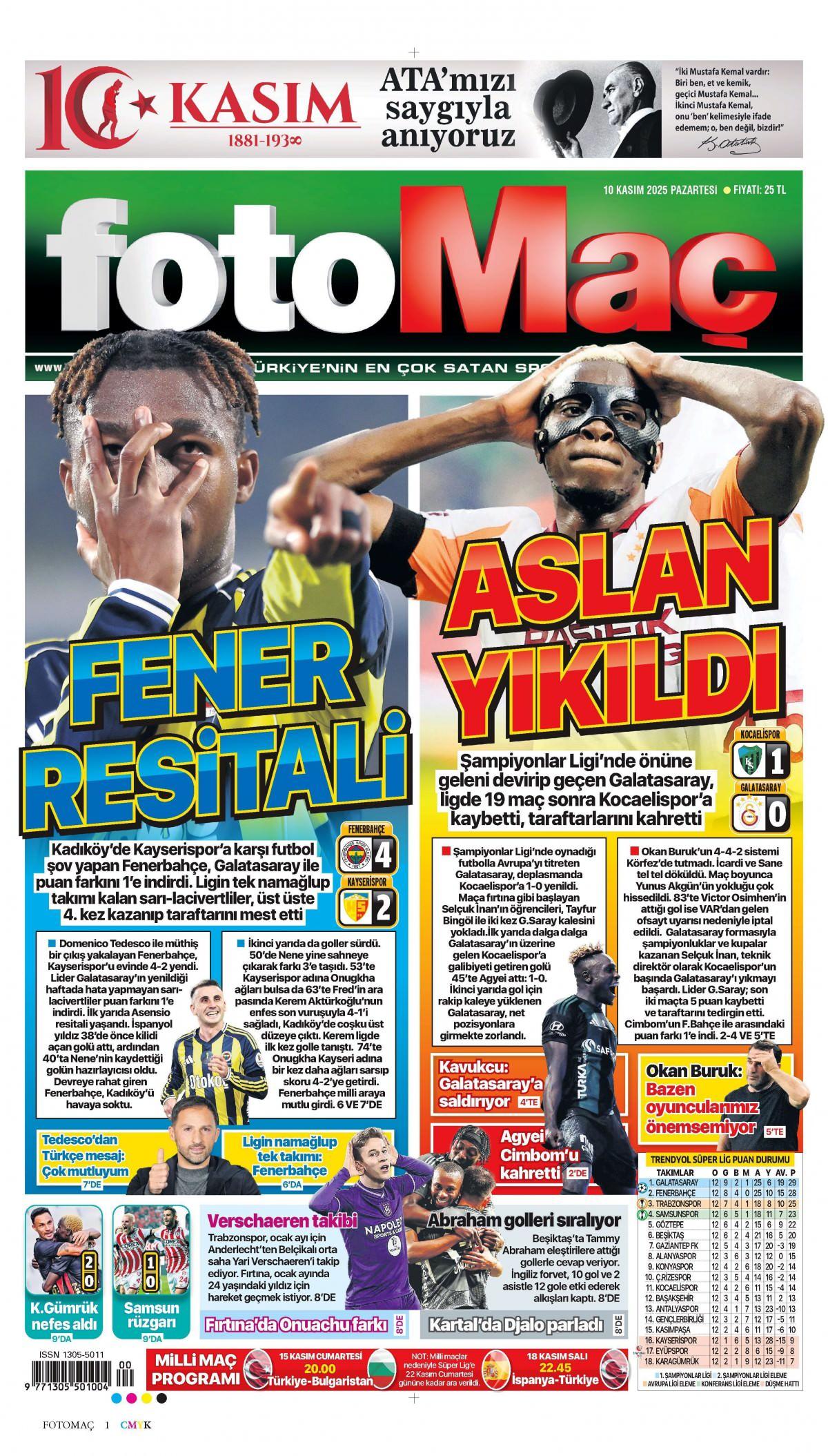 Fotomaç Gazetesi 10 Kasım 2025 Günü Manşeti
