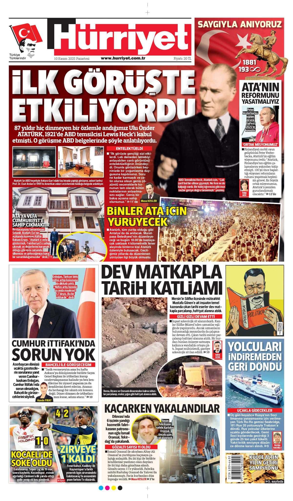 Hürriyet Gazetesi 10 Kasım 2025 Günü Manşeti