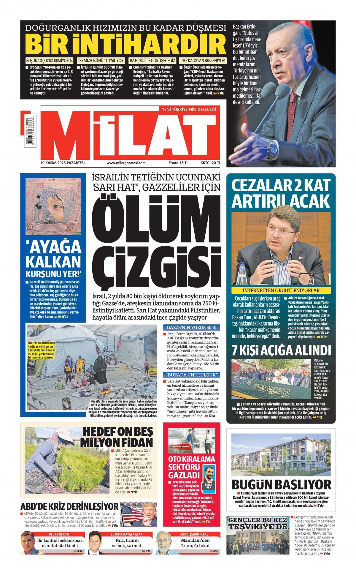 Milat Gazetesi 10 Kasım 2025 Günü Manşeti