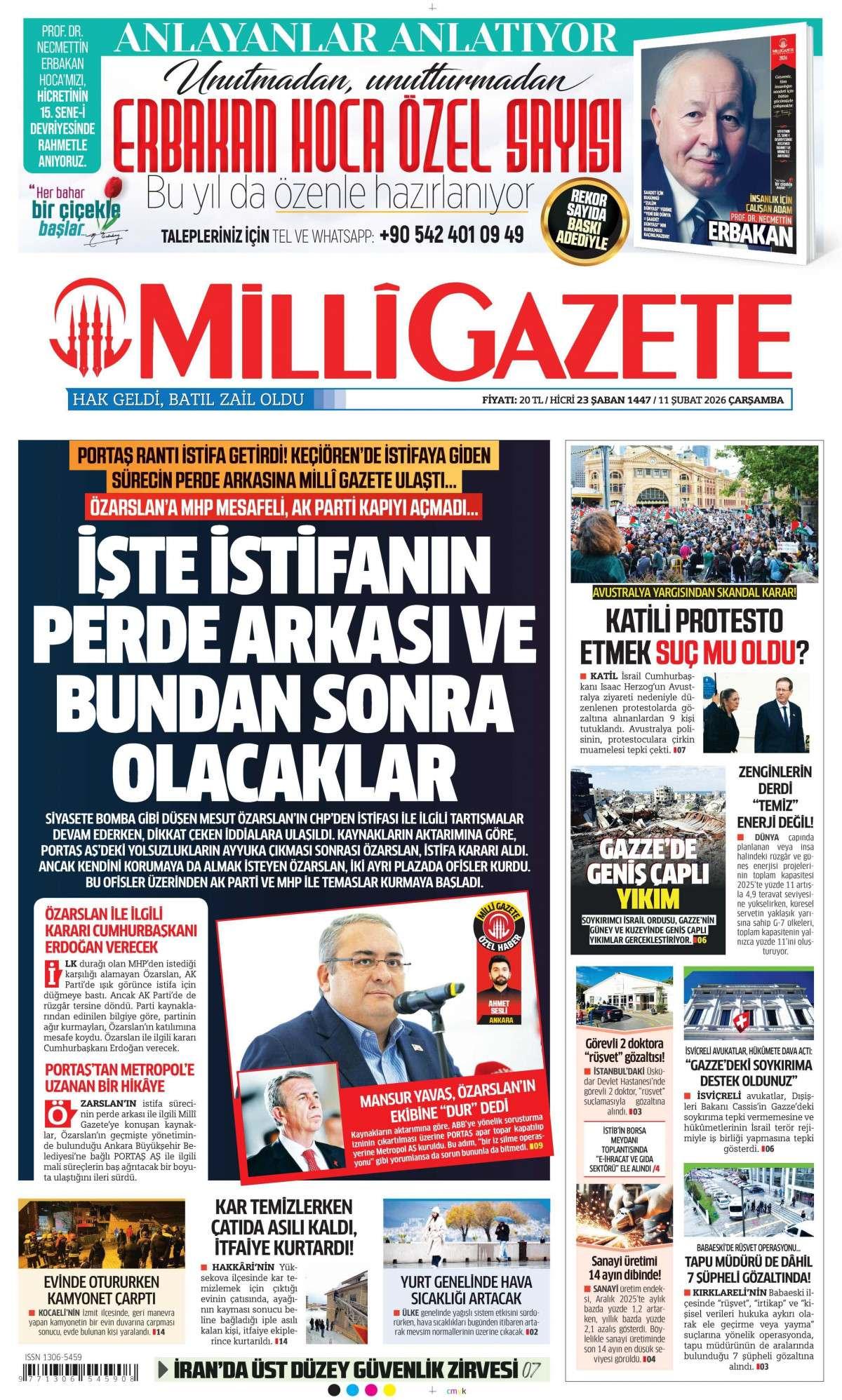Milli Gazetesi 11 Şubat 2026 Günü Manşeti