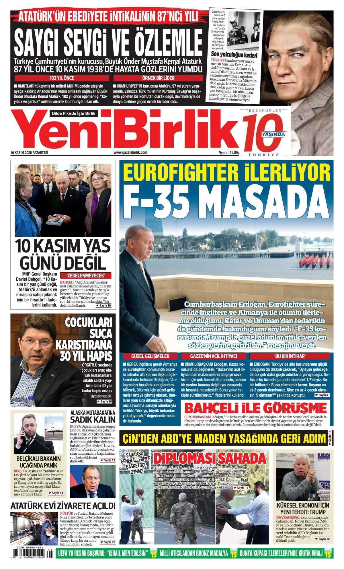 Yeni Birlik Gazetesi 10 Kasım 2025 Günü Manşeti