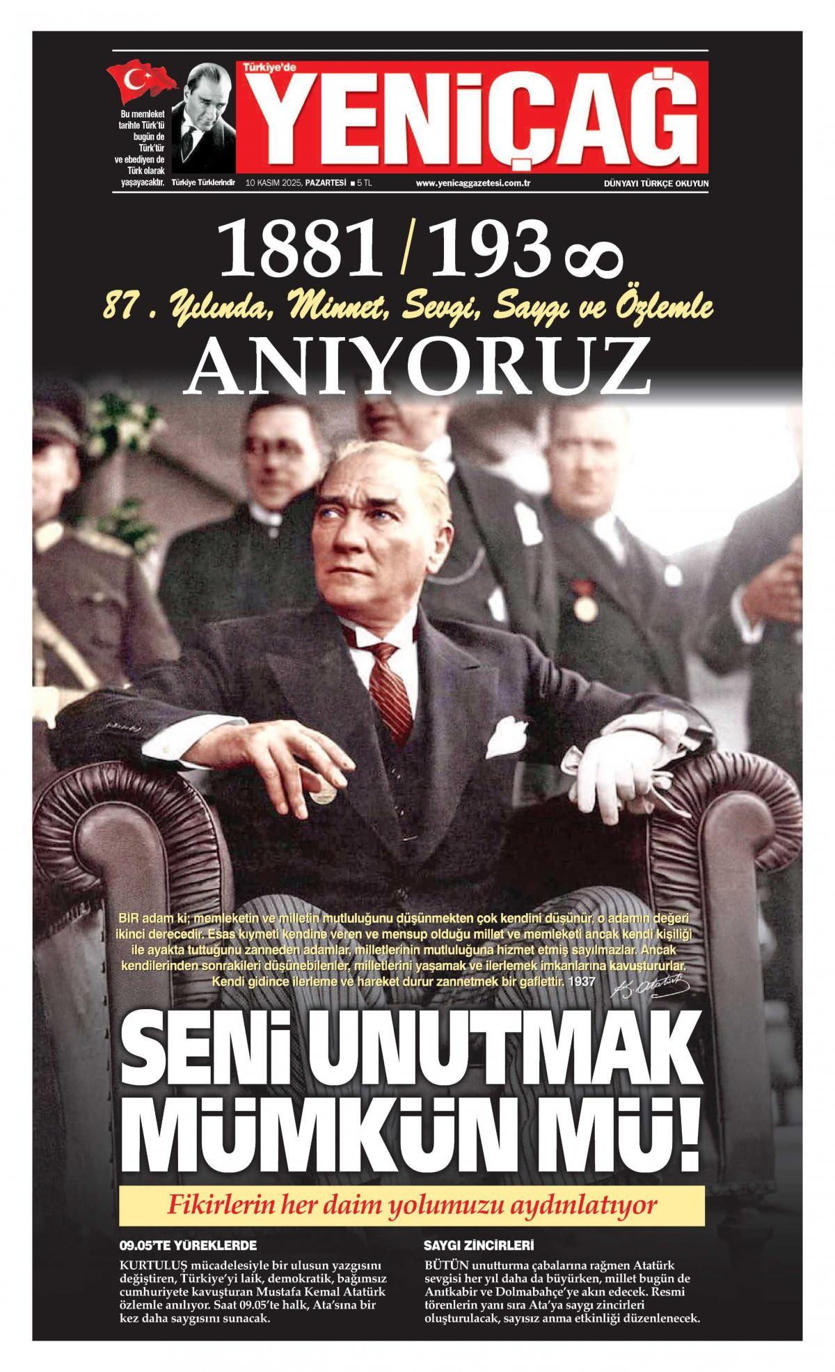 Yeni Çağ Gazetesi 10 Kasım 2025 Günü Manşeti